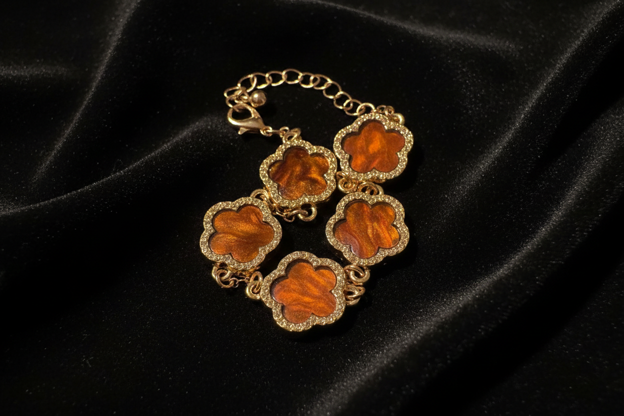 The Cocoa Clover Bracelet Set is a timeless expression of elegance and faith. Featuring delicate clover-shaped links with shimmering accents and rich cocoa tones, this bracelet reflects beauty, grace, and the blessings that come from walking in faith.